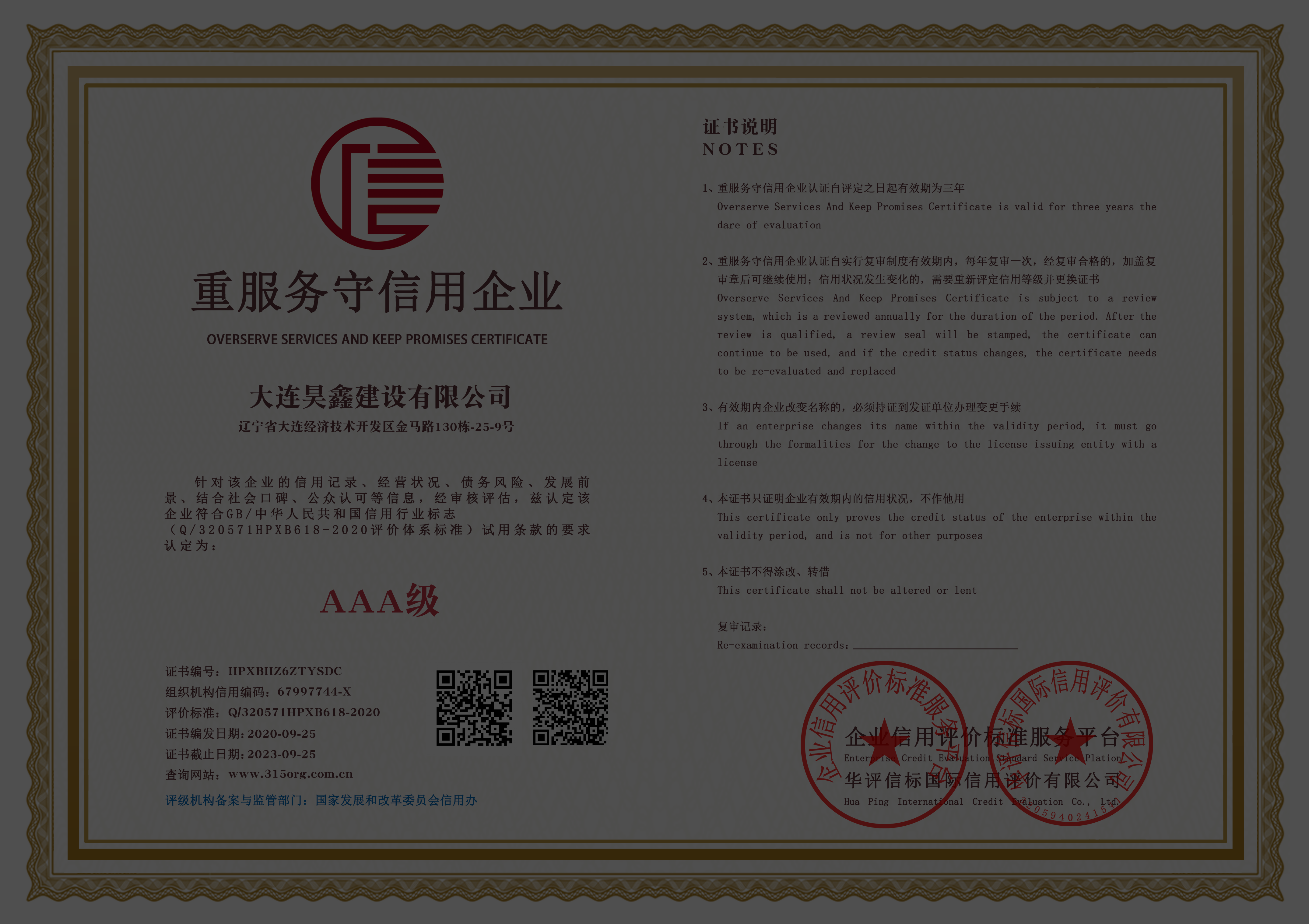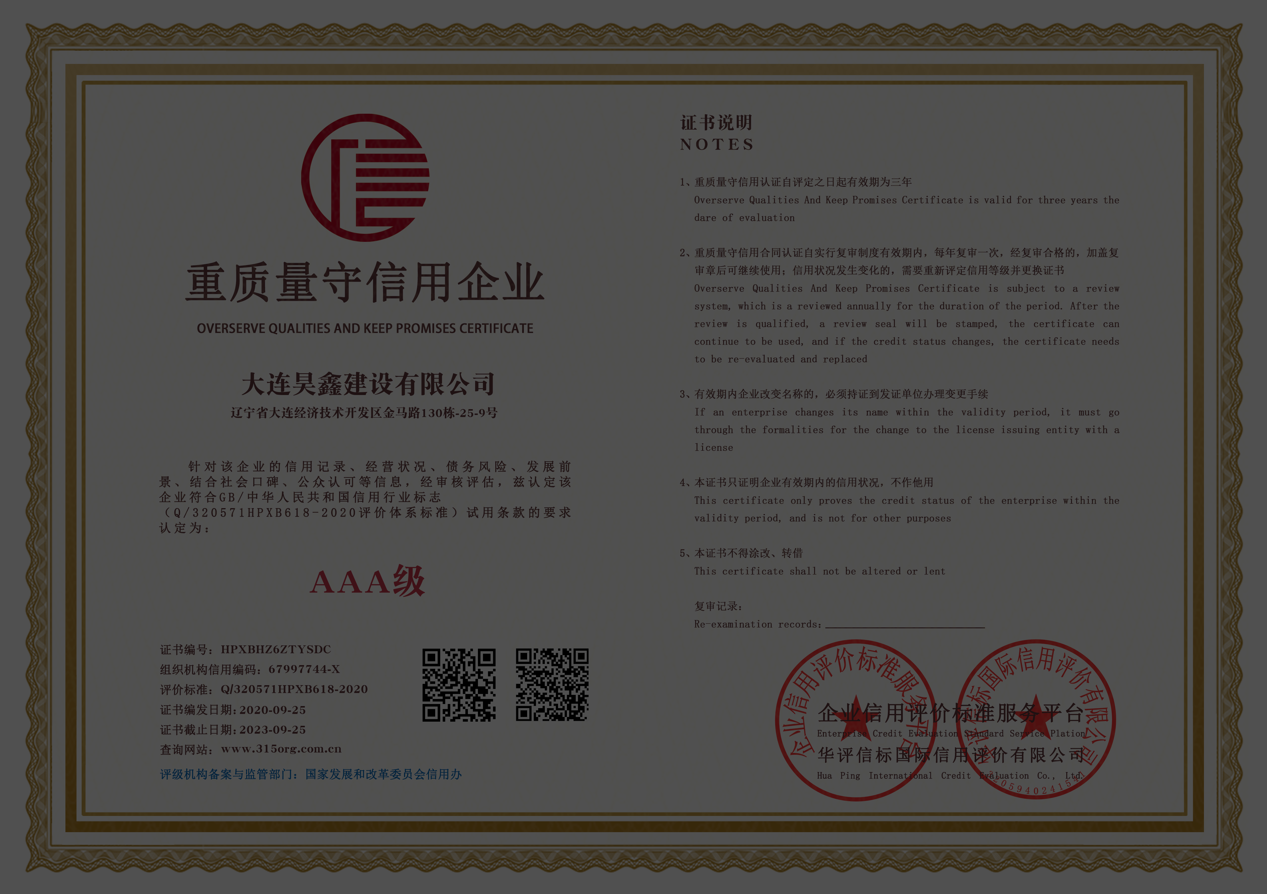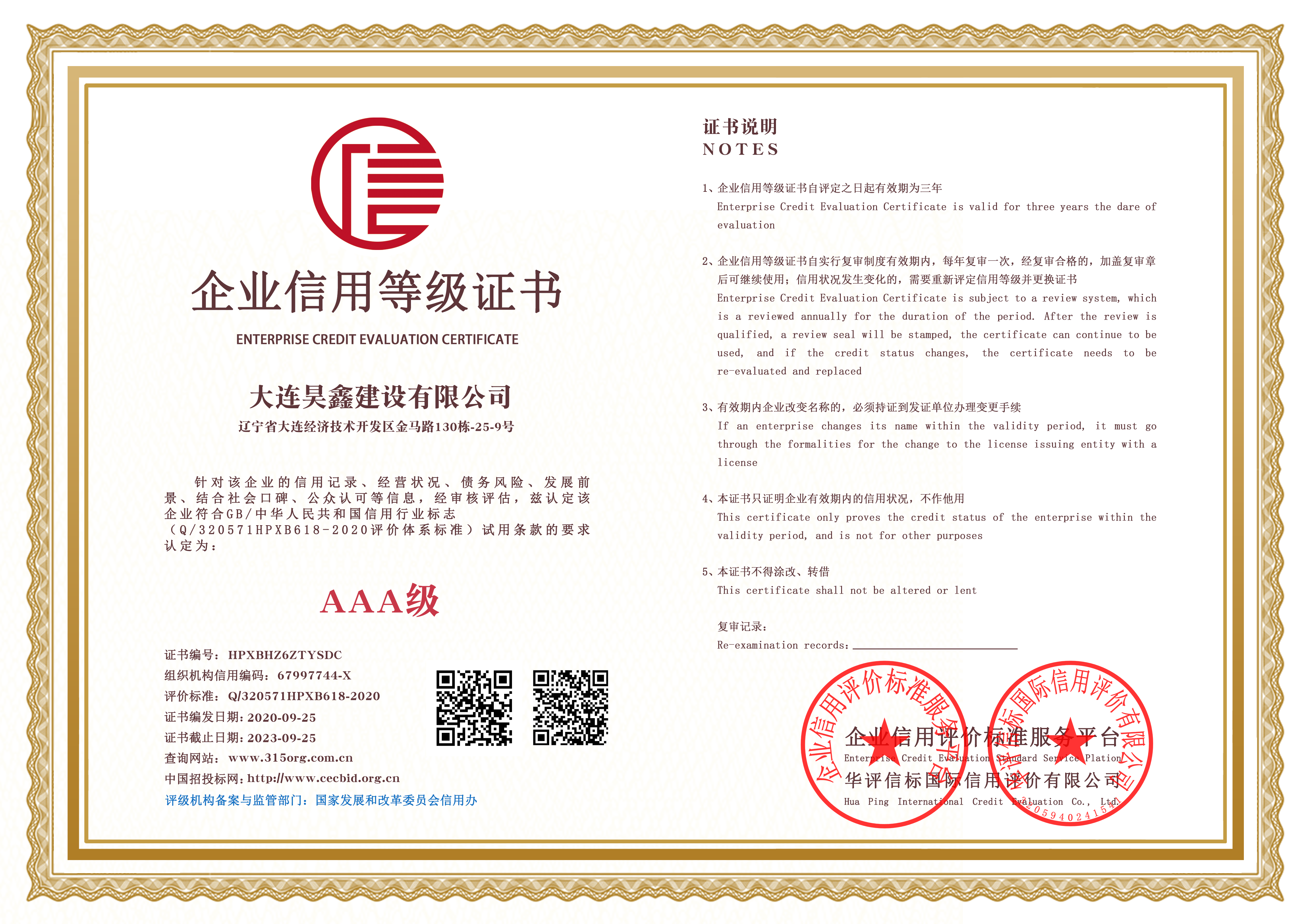 AAA企業(yè)信用等級(jí)